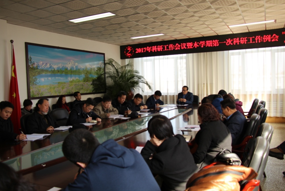 3月8日下午,学校在第一会议室召开了2017年科研工作会议暨本学期第一次科研例会。校长杨晓东出席会议并作重要讲话,副校长宋立军主持会议。各教学分院(部)院长(主任)、主管科研副院长(副主任),科研处科级以上干部参加会议。
