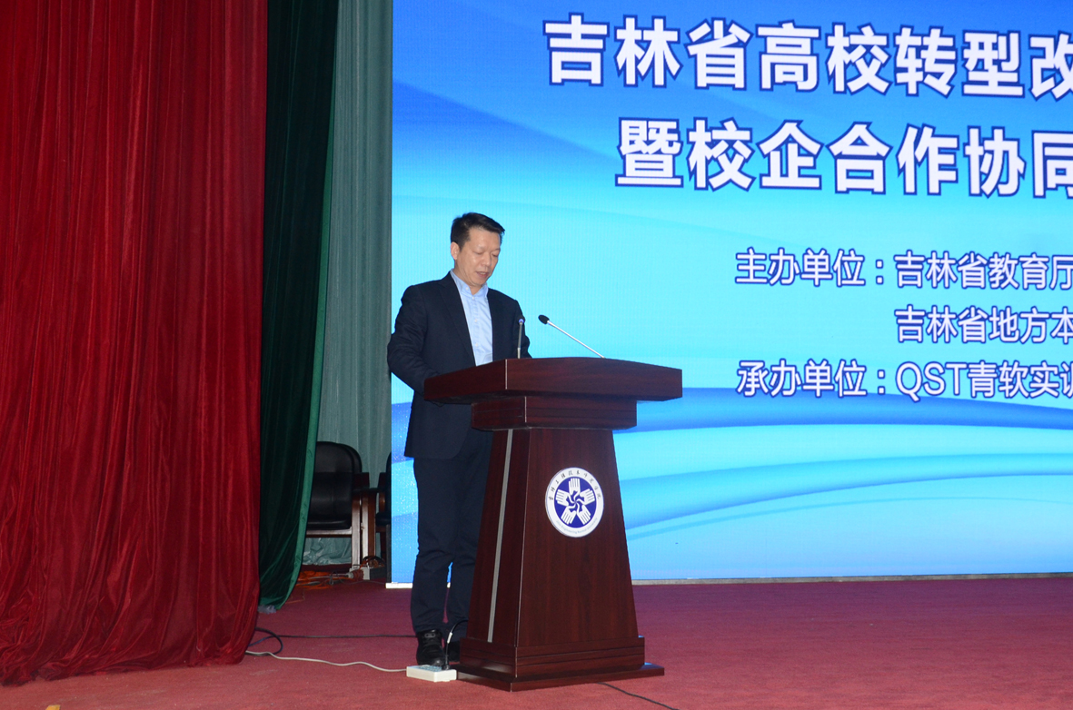 由吉林省教育厅、吉林省地方本科高校转型发展联盟主办,best365和青岛青软实训教育科技股份有限责任公司承办的“吉林省高校转型改革工作推进会暨校企合作协同育人研讨会”11月11日在best365隆重召开。吉林省教育厅高教处宋辉处长到会讲话,宋处长总结了吉林省高校转型改革一年来的主要工作,对2017年吉林省高校转型发展进行了展望。
