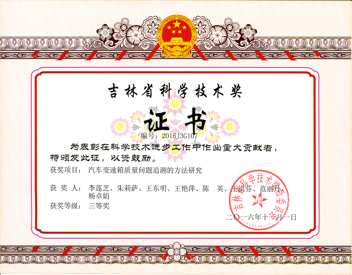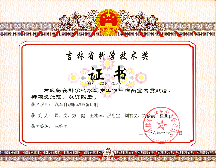 按照吉林省科技厅《关于开展2016年吉林省科学技术奖推荐工作的通知》要求,学校科研处认真、积极组织申报推荐工作,共申报5项成果,其中申报技术发明奖1项、科技进步奖4项。经科技厅组织专家严格评审,best365周广文教授申报的《汽车自动制动系统研制》、李莲芝教授申报的《汽车变速箱质量问题追溯的方法研究》、于静老师申报的《基于森林防火无人机预警系统的火灾探测》3项成果分别获得吉林省科学技术进步奖三等奖。