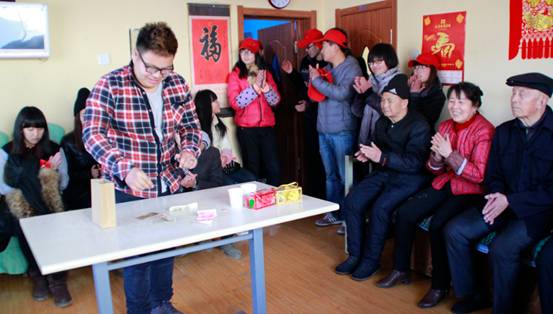 到敬老院表演节目的志愿者们大多是来自艺术学院大学生艺术团的同学们,他们各个多才多艺,他们带给老人们的节目有歌舞、相声、魔术、乐器等。听说志愿者要来表演节目,老人们在敬老院的一楼活动室里,早早的都占好了位置,志愿者们一出场,大爷大妈们的脸上乐开了花,屋子里到处都是温馨、快乐、幸福的语声和笑声。活动接近尾声时,一位94岁的老大爷很激动的给大家唱了一首他自己的歌曲,并大声的朗读了他早已写好的感谢信,志愿者们深受感动!