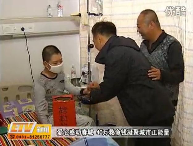 宋健是长春经开区世纪小学2013届的毕业生,今年刚满12岁。他从小父母离婚,跟着年迈的爷爷生活。今年6月26日,在小学毕业考试的前两天,小宋健不幸患上高危T型白血病,医生随后下达了病危通知。就在一家人一筹莫展的时候,孩子病情有了新变化,经医院检查已经转为阴性,即有了治疗的可能。经多方努力,在中华骨髓库配到了非常吻合的配型,只要交上40万手术押金就可以活命了。但是,面对高额的医疗费孩子说什么也不同意治疗。