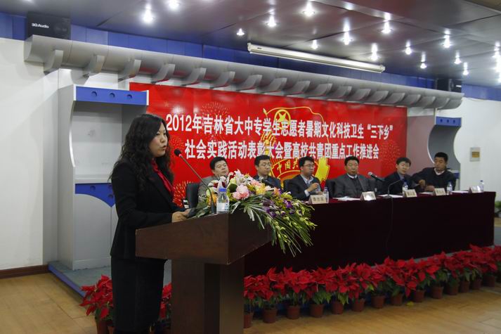 10月12日,由省委宣传部、省文明办、省教育厅、团省委联合举办的2012年吉林省大中专学生暑期文化科技卫生“三下乡”社会实践活动表彰大会暨高校共青团重点工作推进会在best365第三教学楼多功能厅隆重召开。共青团吉林省委副书记栾国栋,共青团吉林省委组织部部长李忠双、宣传部部长罗生存、学校部部长李春然、农村青年部部长赵宏锦和best365党委副书记张云志出席会议,全省50所高校的团委书记和学生代表近百人参加了会议。会议由李春然部长主持。