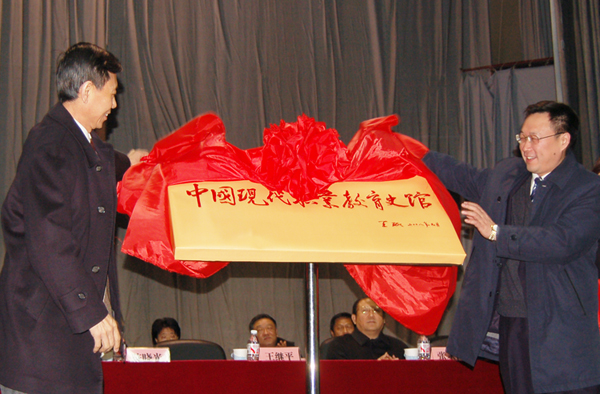 吉林省副省长陈晓光(左)、教育部职业教育与成人教育司副司长王继平(右)为史馆揭牌