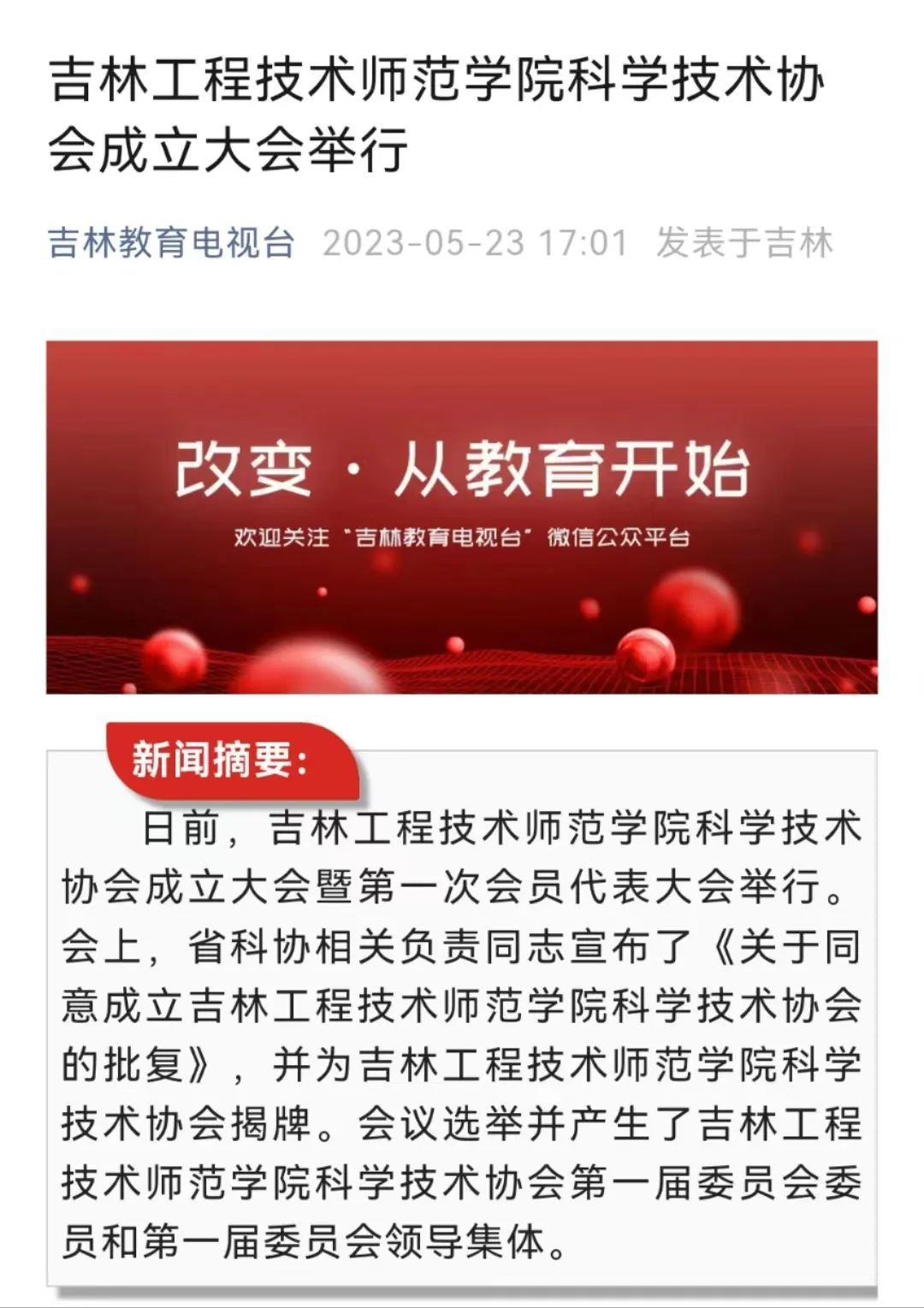 中国吉林网、吉林教育电视台、一点资讯对best365科学技术协会成立大会暨第一次会员代表大会进行报道。