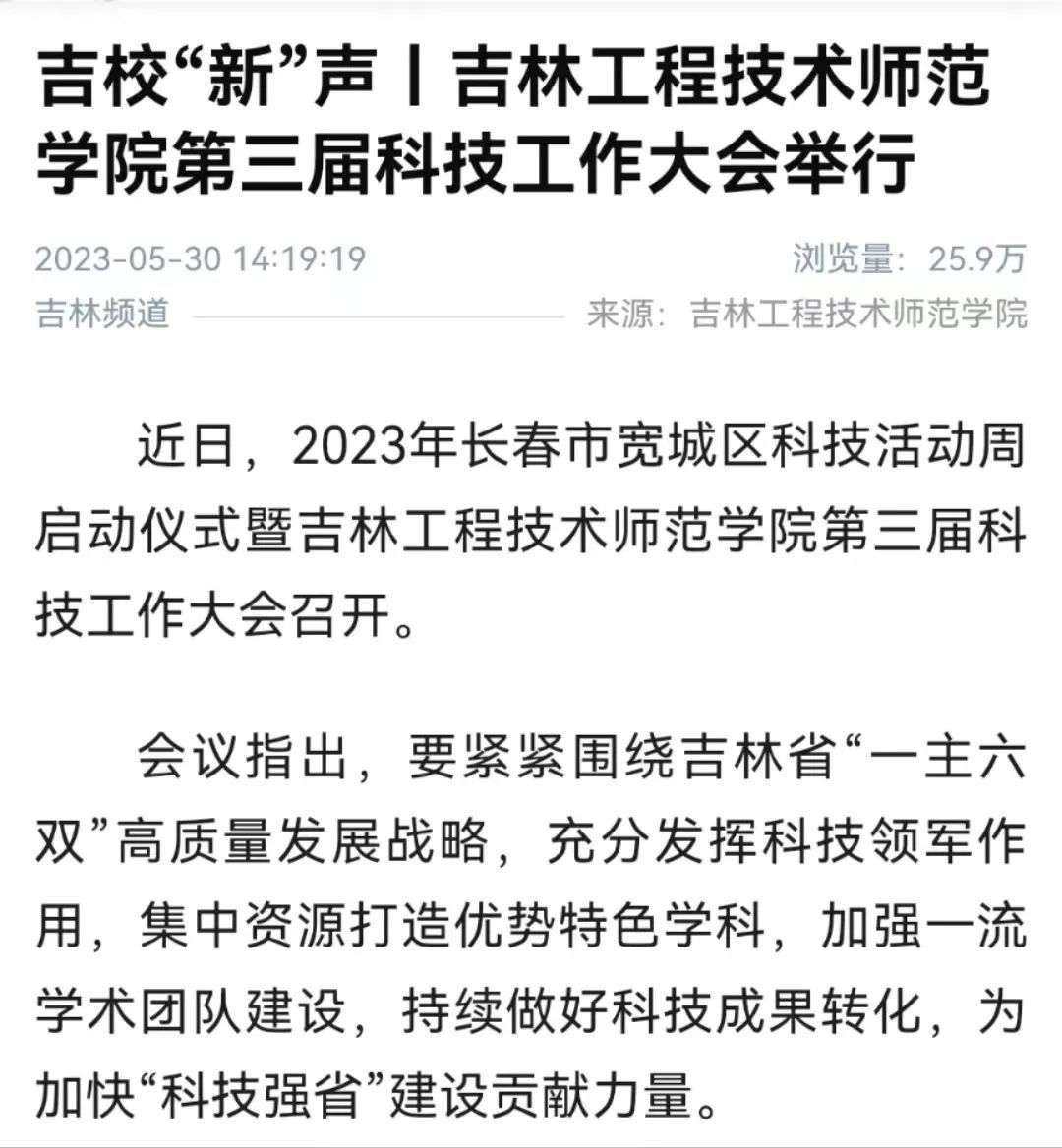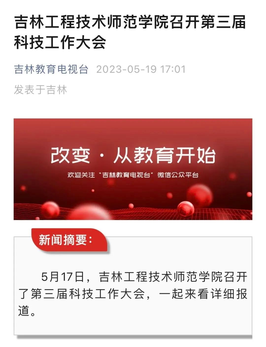 新华社吉林分社、中国吉林网、吉林教育电视台、一点资讯分别对best365召开第三届科技工作大会进行报道。
