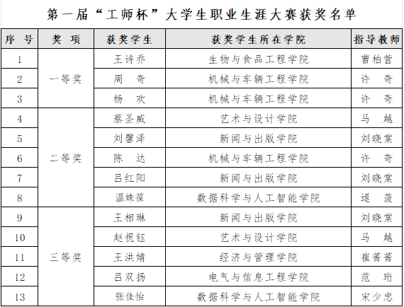 通过职业生涯规划大赛的锻炼,同学们对自己的职业发展有了更加清晰的认识,意识到作为新时代青年们所要承担的重任,切实提升了学生的就业竞争力,指导教师的职业生涯教育教学水平也得到了提升,达到了以赛促学、以赛促教、以赛促就的目标。