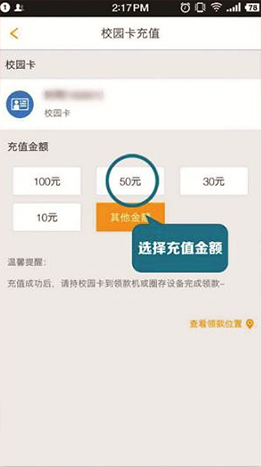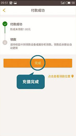 第3步:充值后在食堂内任意空闲的消费机上刷卡领款,听到“嘀”声后表示完成了领款操作,充值金额自动激活,可以正常刷卡消费。