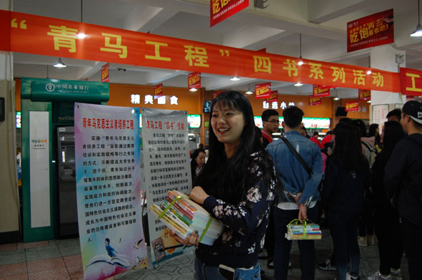 为进一步扎实推进best365“青马工程”建设,更好服务于best365教学质量提升年,在第二十一个世界读书日到来之际,4月22日上午10点40分,由团委、学工部、思政部联合开展的青马工程“四书”系列活动在学校大食堂一楼举行。