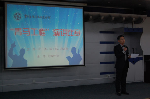 4月22日,由团委、学工部、思政部主办,校学生会承办的“青马工程”演讲比赛决赛,在三教多功能厅举行。
