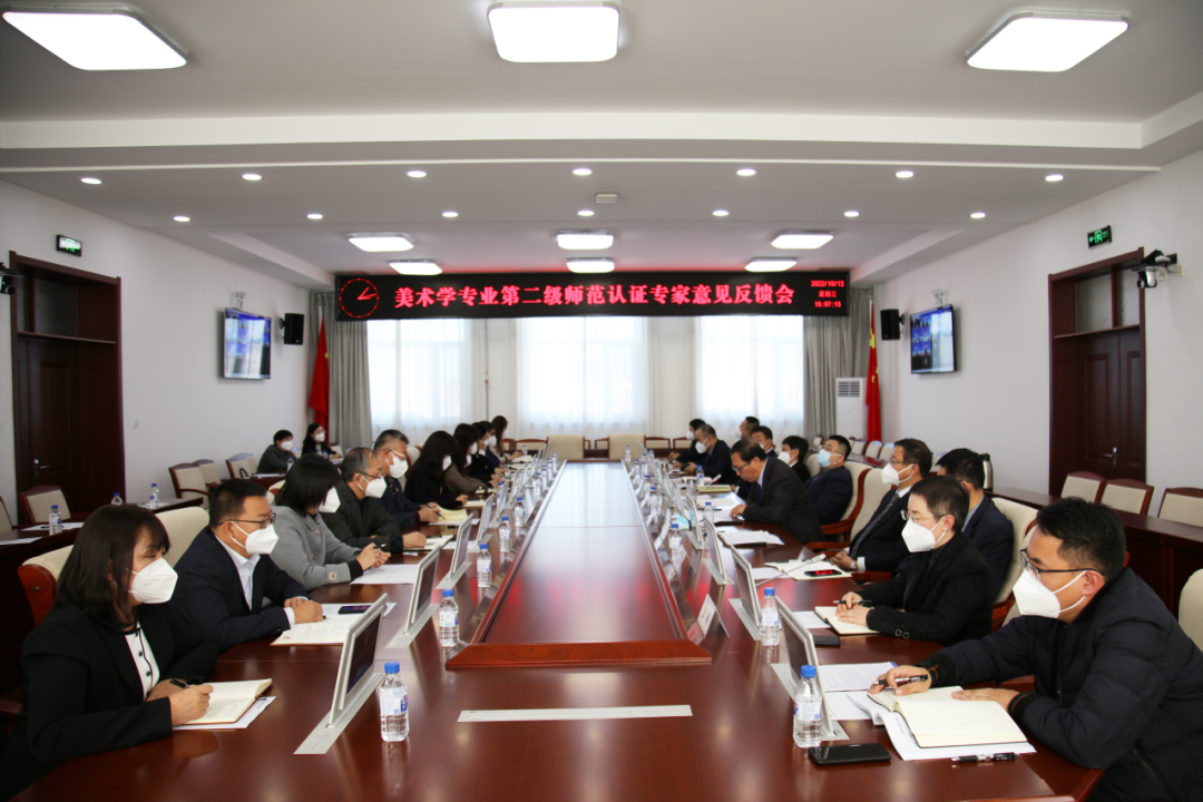 2022年10月12日下午,美术学专业师范认证线上考查专家意见反馈会在办公楼410室召开。专家组成员,省教育厅领导,评估机构负责人,学校其他师范专业所在学院教学副院长及专业负责人、教师代表在线出席会议。学校领导,相关职能部门及单位负责人,艺术与设计学院领导班子成员、各学院(部)行政负责人线下参加会议。会议由线上考查专家组组长王建平主持。会上,王建平代表全体认证专家组成员对学校连日来积极配合专家进行线上考...
