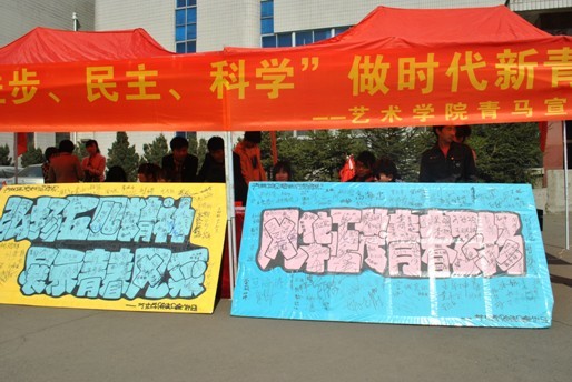 艺术学院开展“弘扬五四精神做时代新青年”主题宣讲活动 2011年5月4日艺术学院青年马克思主义学习小组在best365图书馆门前开展了“弘扬五四精神 做时代新青年”主题宣讲活动,本次会活动以“爱国、民主、进步、科学”为...