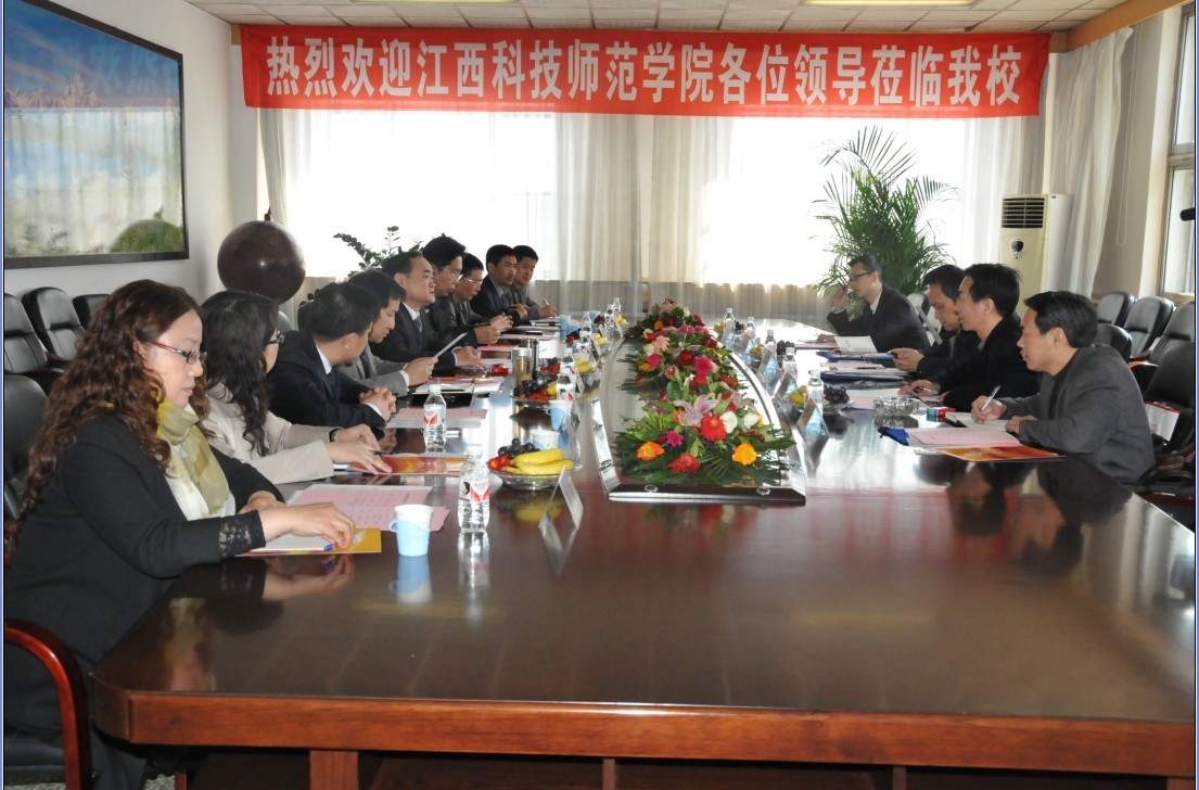 江西科技师范学院来best365考察 4月17日上午,由江西科技师范学院纪委书记魏新华率领的该校一行5人代表团来best365考察,best365校长王建华、纪委书记王永明等领导会见了代表团一行。