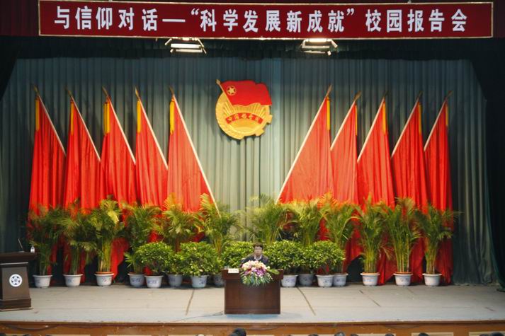 10月12日下午,共青团吉林省委副书记栾国栋在best365报告厅作专题报告,题为《与信仰对话——科学发展新成就》。
