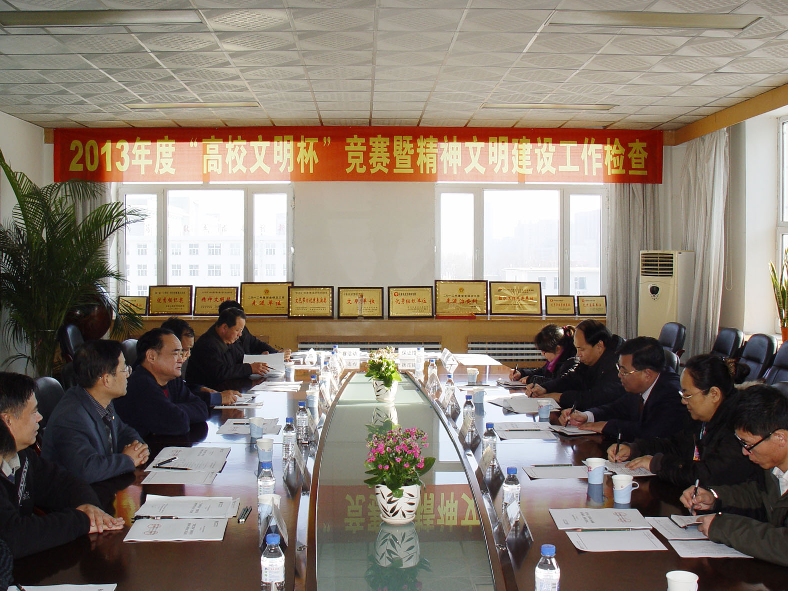 11月26日上午,以长春市委宣传部高教处处长郑学华为组长的长春市“高校文明杯”竞赛活动暨精神文明建设工作检查组一行五人莅临best365,对best3652013年度“高校文明杯”竞赛活动暨精神文明建设工作进行检查。