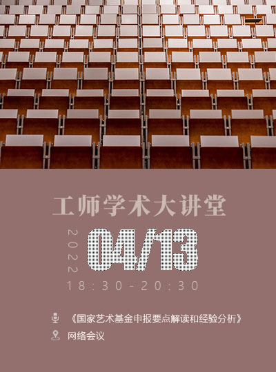 主讲人:施海滨,男,沈阳工学院艺术与传媒学院教授时间、地点:2022年4月13日9时,网络会议主办单位:艺术与设计学院、科研处讲座内容:1.项目申报要点;2.美术类不同申报项目的关注要点; 3.个人创作经验分享;4.答疑解惑。